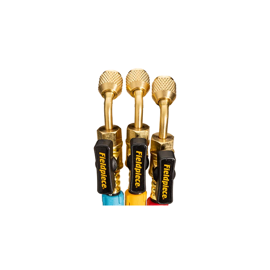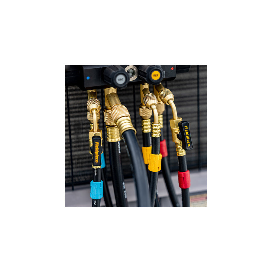 The rugged full ring triple crimp design for increased reliability even at high pressure ensures quality and durability that make HVACR jobs easier, faster and better. Fieldpiece hoses are A2L-ready with durable four-layer construction and neoprene gaskets for a lasting seal even when exposed to harsh temperatures and lubricants.
