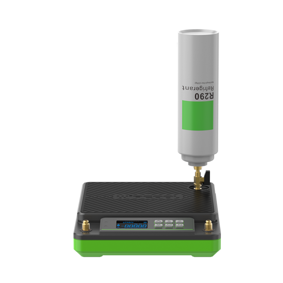 Equipped with a large, easy-to-read digital display, it allows real-time monitoring of the charging volume, effectively preventing overcharging and leakage. Built with a durable structure, the unit supports up to 10 kg capacity, and features two filling ports—upright and inverted, offering flexibility for different charging needs. It is compatible with a wide range of refrigerants and comes with an R290/600a cylinder adaptor (7/16-20 UNF to 7/16"-28 UNEF Female) for enhanced compatibility.