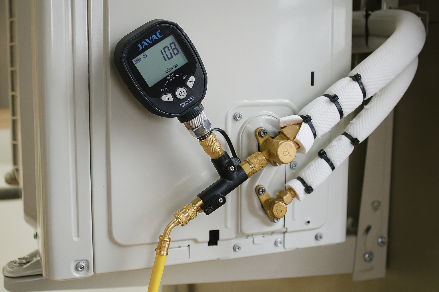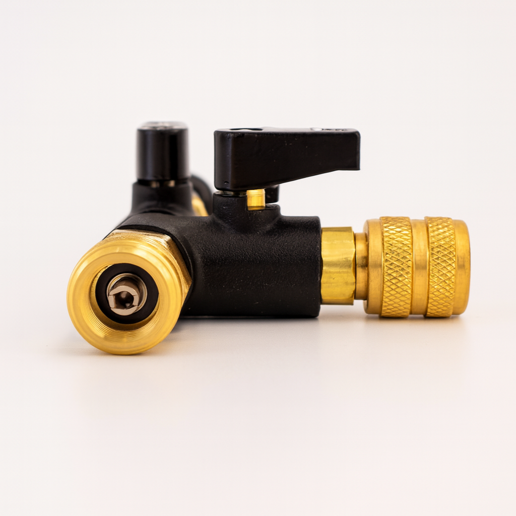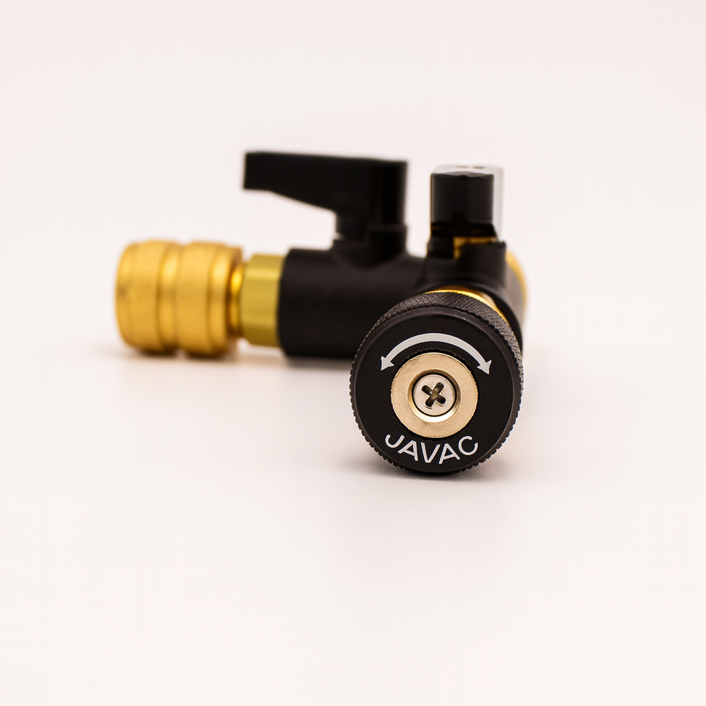 The JAVAC Core Valve Removal Tool is engineered for far more than simply removing valve cores. Its design allows technicians to significantly reduce evacuation times while positioning a micron gauge as close to the system as possible for accurate measurement.