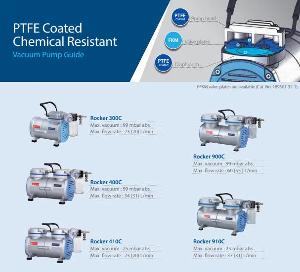 ROCKER 410C PTFE Coated Chemical Resistant Vacuum Pump 20 L/min