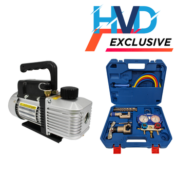 This HVACDIRECT KIT4, Refrigeration & HVAC Split System Install Kit (Pump, Manifold Set & Tool Set) is a high quality tool kit that is ideal for general refrigeration and split system service. Included in this kit are some of HVAC Direct's best selling products.