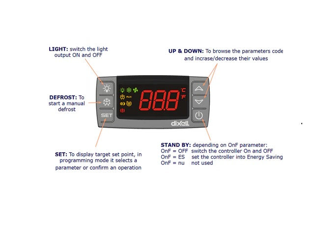 Dixell prime series CX is an innovative range of products for both heating and L.T, N.T. refrigeration. he CX family has new functions plus an innovative and attractive design. The revolutionary introduction of 6 keys allows the user direct access to all main functions rapidly and intuitively, while the display with illuminated icons allows an instant view of the machine's status.
