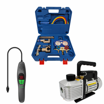 This HVACDIRECT KIT5, Refrigeration & HVAC Split System Install Kit (Pump, Manifold Set, Tool Set & Leak Detector) is a high quality tool kit that is ideal for general refrigeration and split system service. Included in this kit are some of HVAC Direct's best selling products.