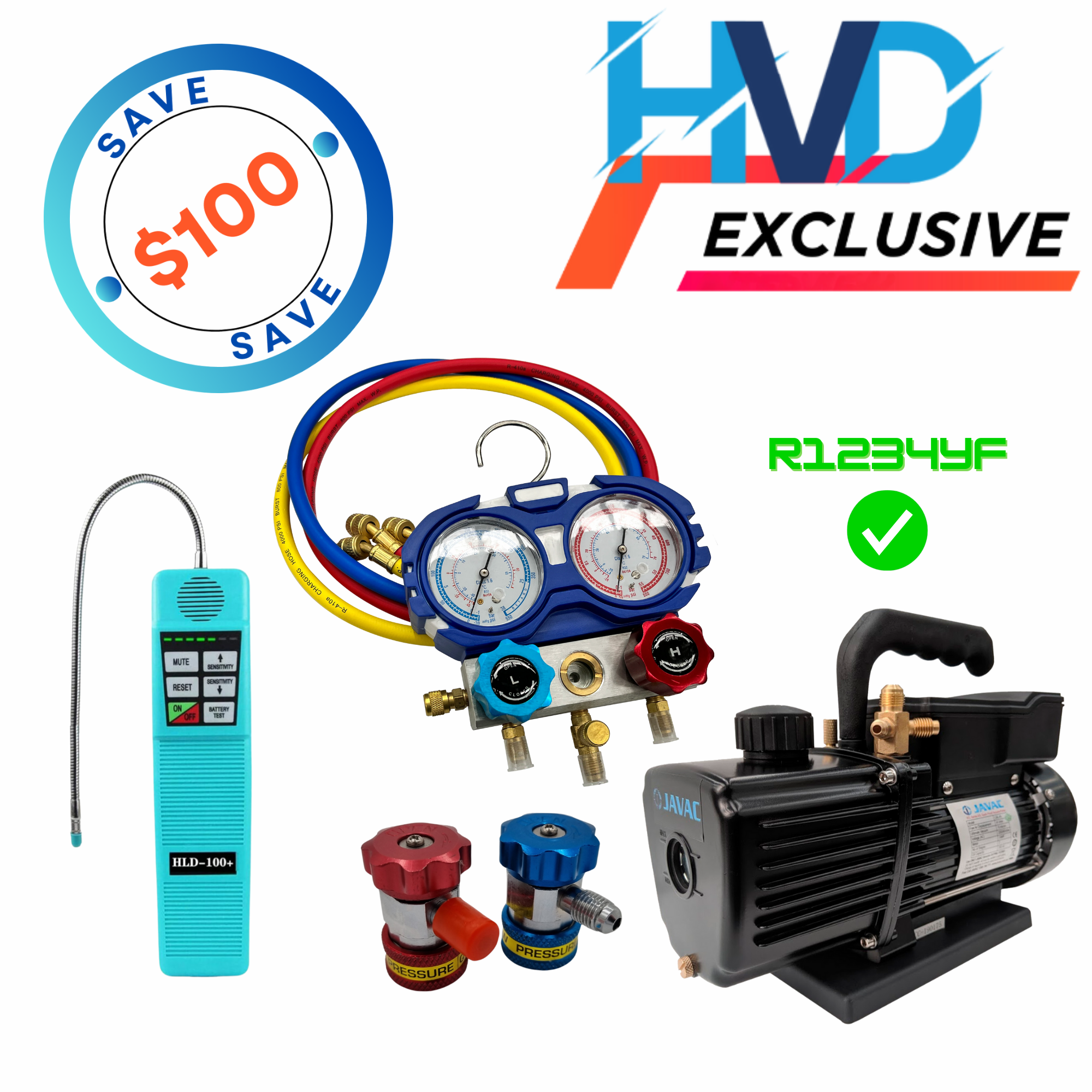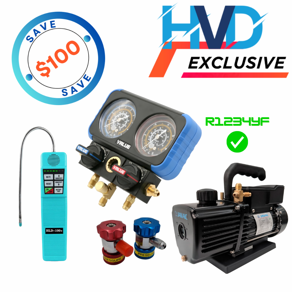 HVACDIRECT Basic Auto Kit 4: Vacuum Pump, Manifold & Leak Detector