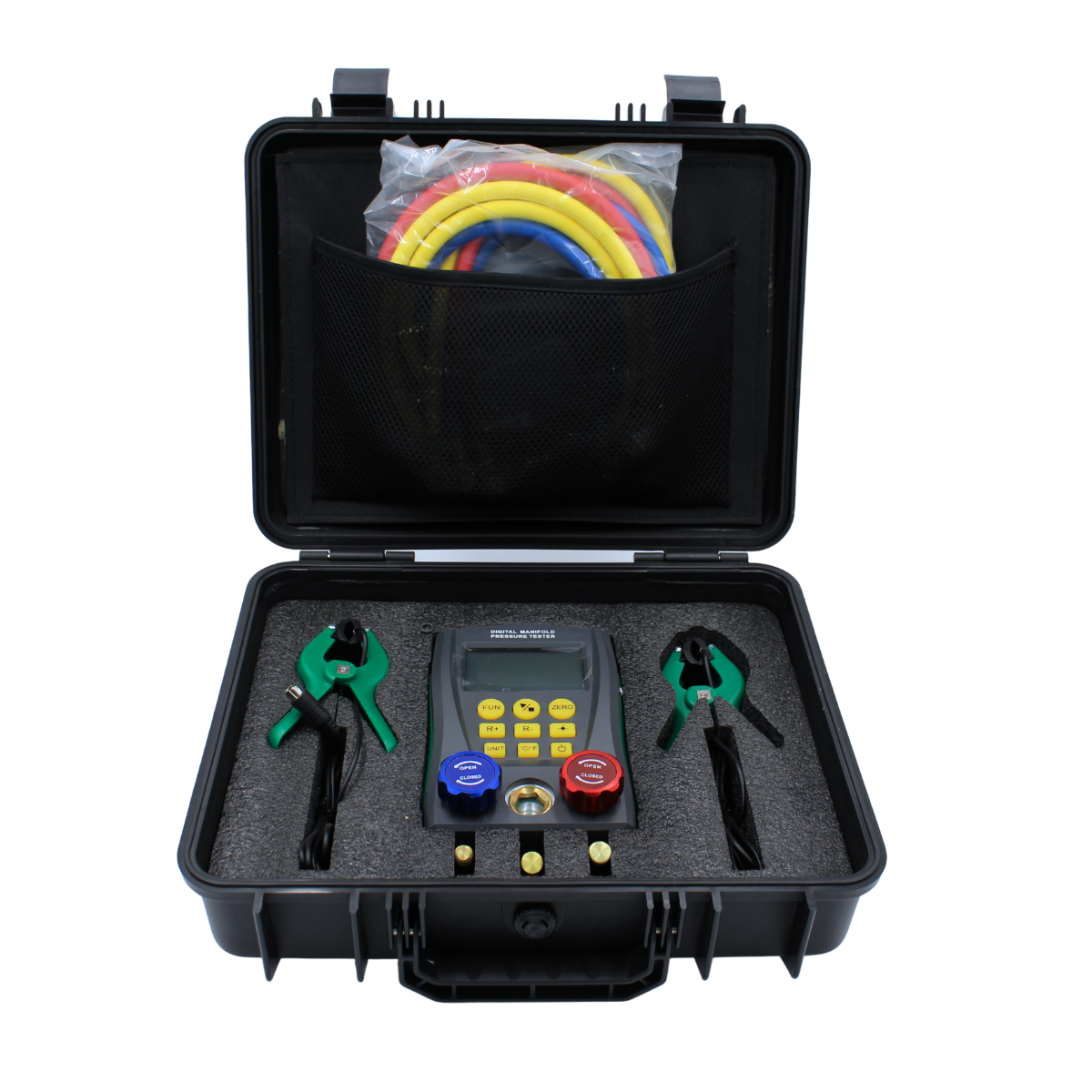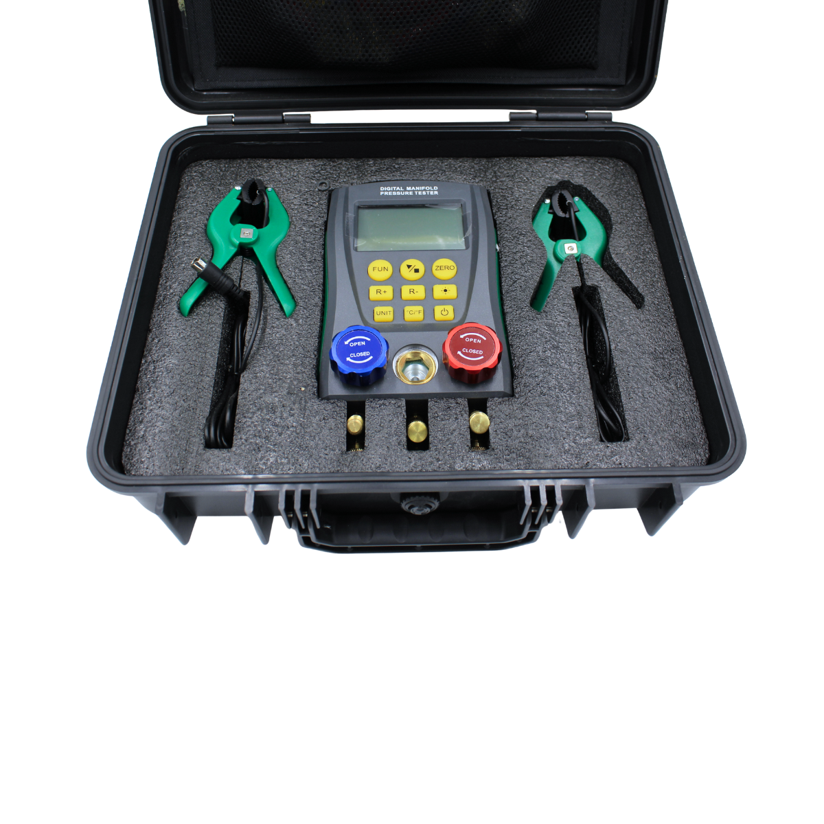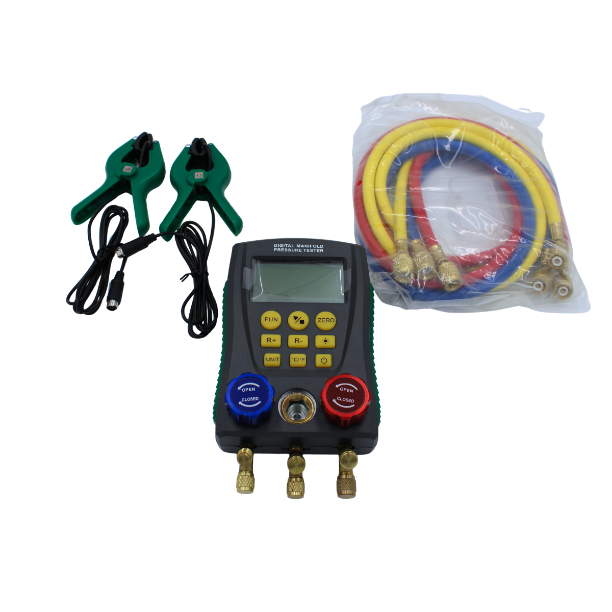 The Digital Refrigerant Manifold Gauge is designed for precision testing, installation, and maintenance of air conditioners, refrigerators, and cold storage systems. It combines dual pressure and temperature measurement with digital accuracy and an extensive refrigerant database, making every job faster and easier.
